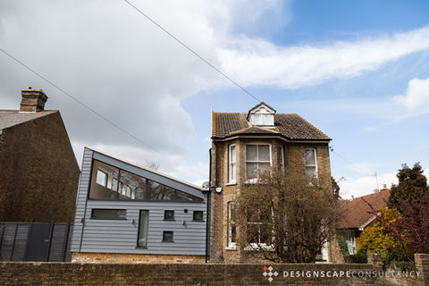 The design incorporated a large open planned extension to the side, with internal remodelling to create large, light and spacious living accommodation. The proposal features a shallow pitched roof, which steadily rises toward the blank gable end of the neighbouring property. Being founded in the Kentish Vernacular, the extension features the contemporary facing material of pale grey weatherboarding.